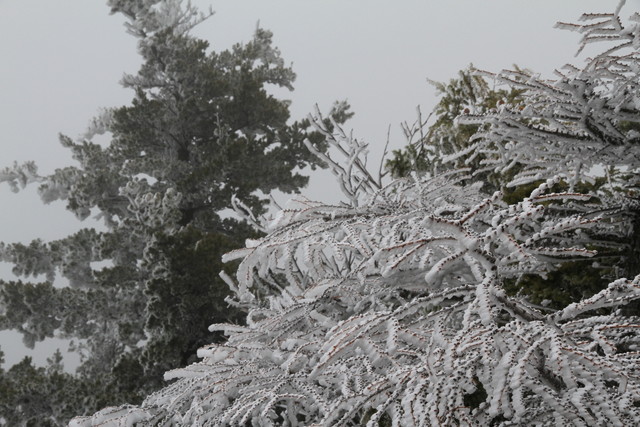 それにしても辺りの木々は、真っ白け。雪を被っているというより、凍ってるよね、これ。