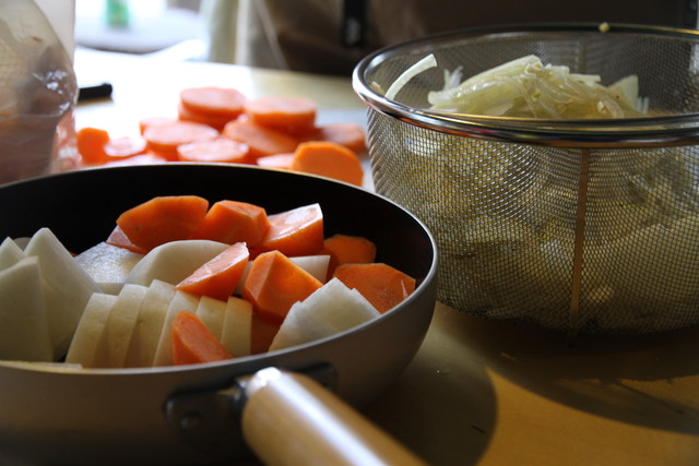 さて、陽も暮れかけてきたし、いそいそと調理開始。