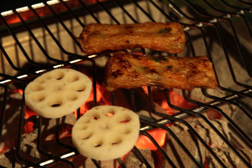 なので、おつまみはレンコンを焼くだけー、さつま揚げを焼くだけー。