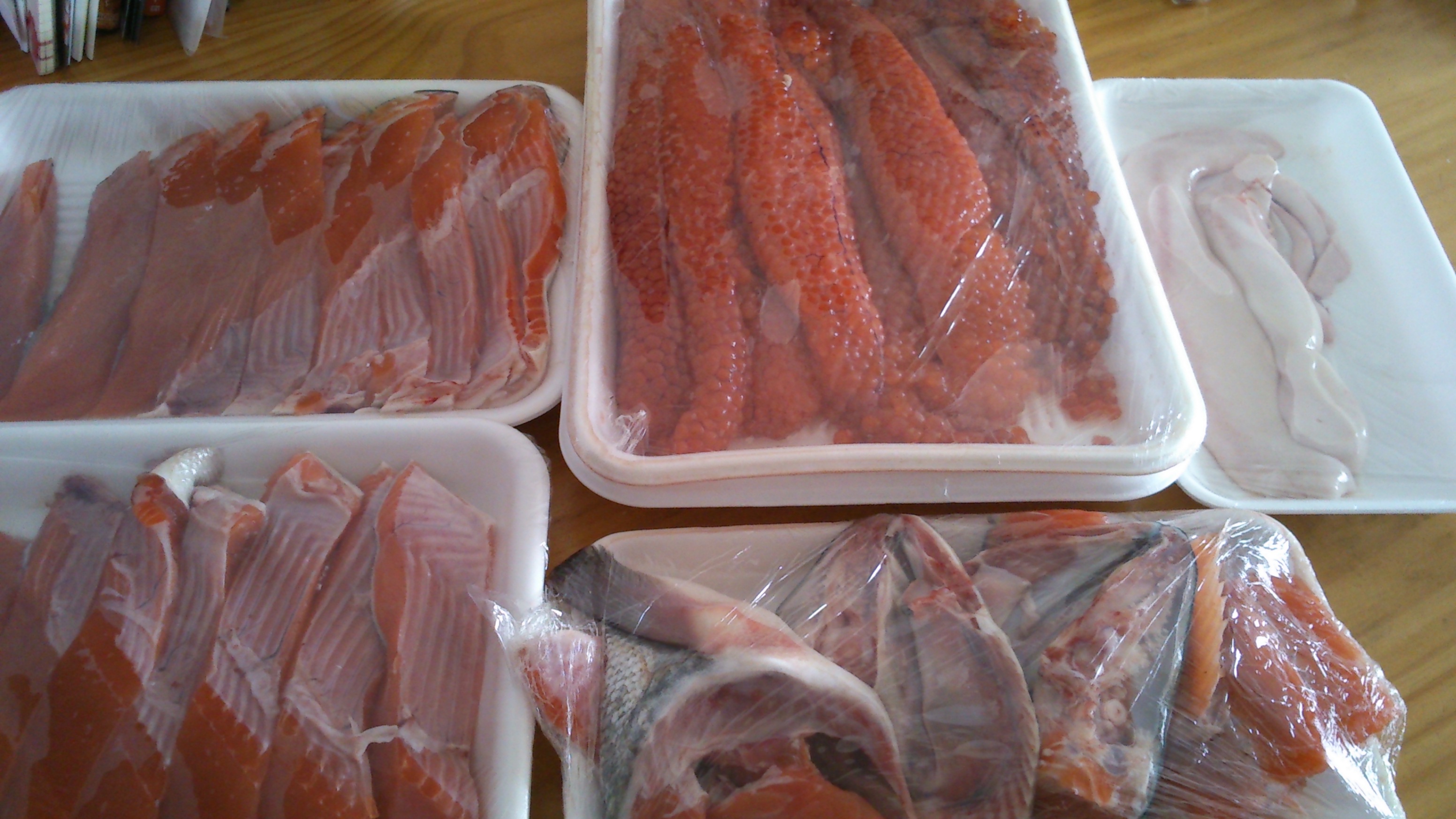 タラバガニ、ツブ貝、活ホタテ、ホッキ貝。