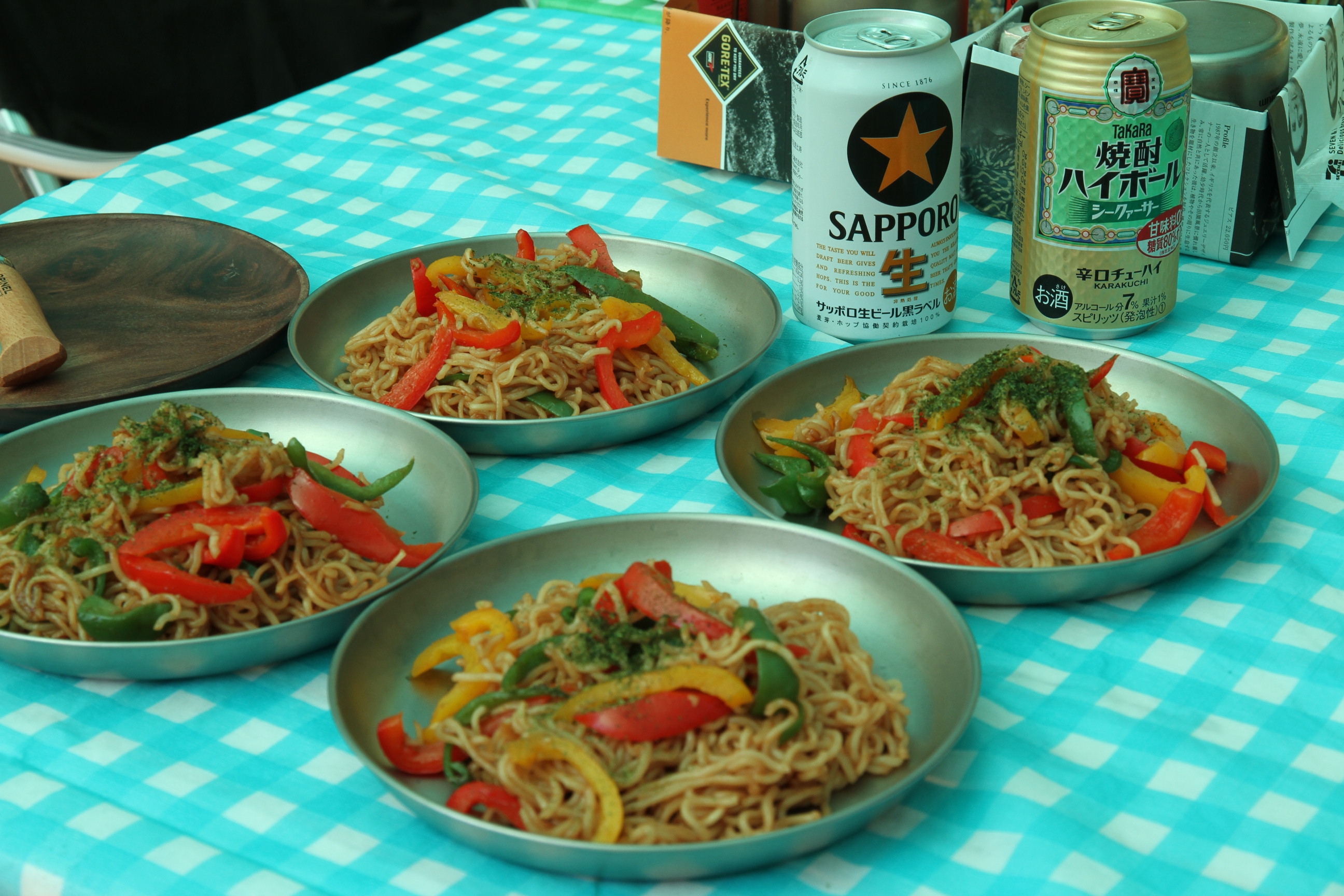 初日の設営後、bebe家が作ってくれた焼きそばでお昼ゴハン。
