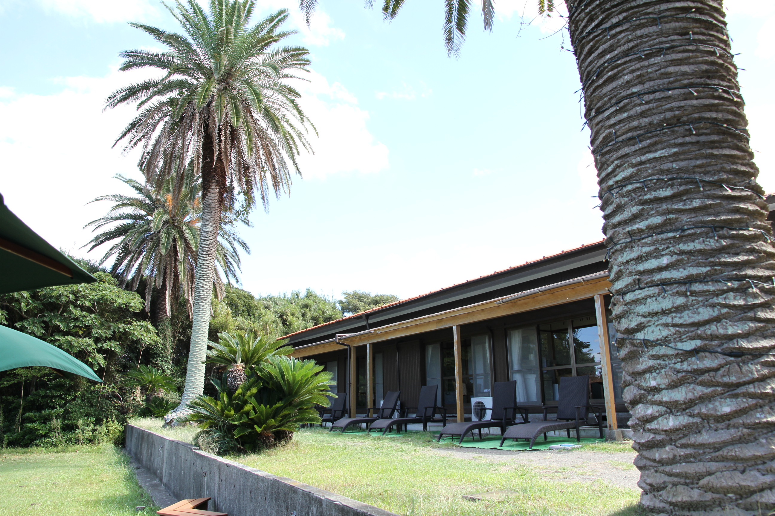 お部屋からそのままお庭に出て海へ行けます。