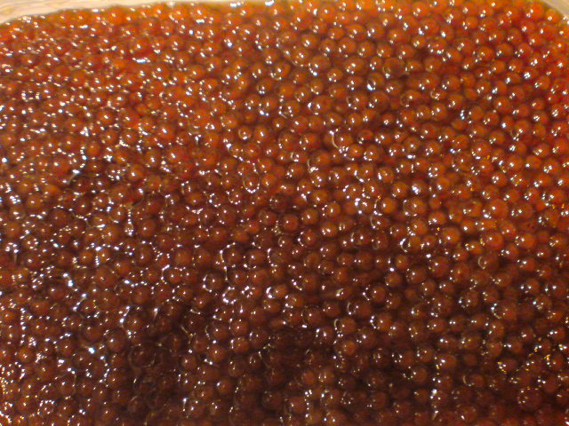 「いくらの醤油漬け」の仕込みが完了。