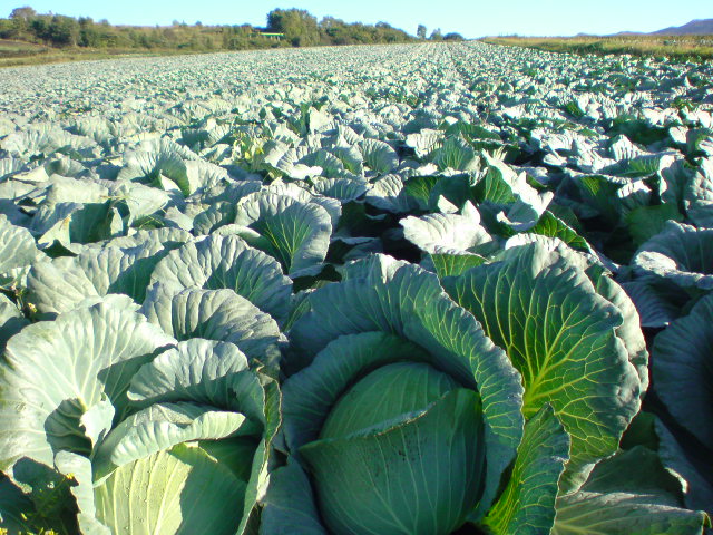 早朝6時、キャンプ場のお兄ちゃんに誘われ近くの農家さんにお願いしているキャベツ畑で