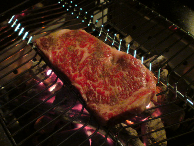 そんな炭火を使って、豪快に塩コショーのみの味付で「信州牛ステーキ」なんかも