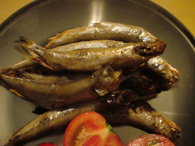 炭火で焼いたししゃも。