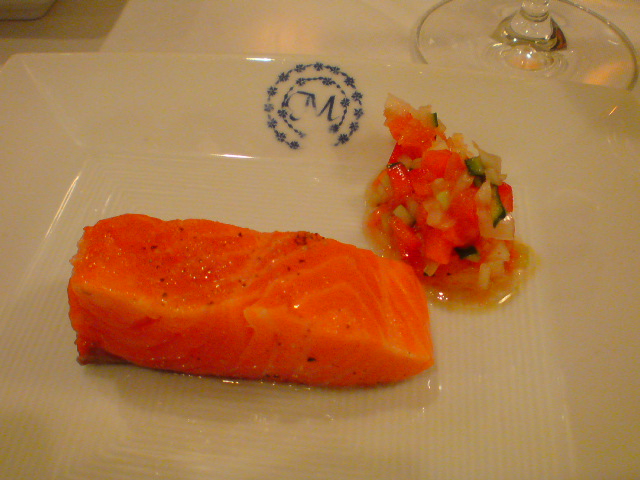 「半生サーモンのフレッシュトマトソース」