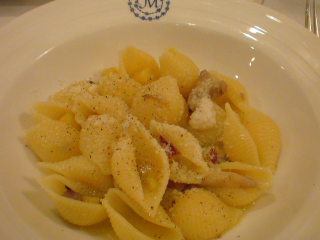 今回のメインである「塩豚」を使ったコンキリエ(貝殻パスタ)