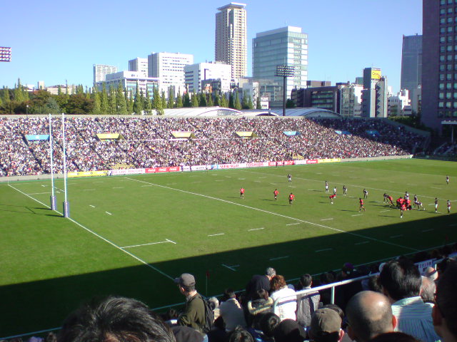 ラグビー場では早稲田×帝京が終わり、そのまま慶応×明治を観戦していた。