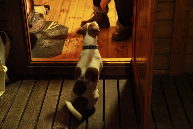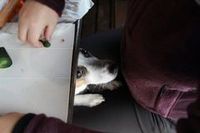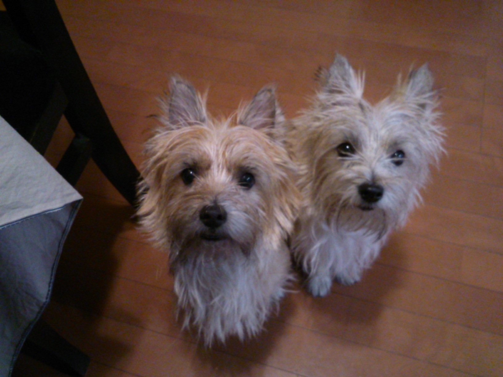 右:野菜を切っていると、こんなとこから四郎がおねだり。