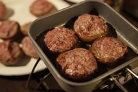 しいたけにコンビーフにマヨネーズを混ぜたものを詰めて、ガーリックバターで焼く。
