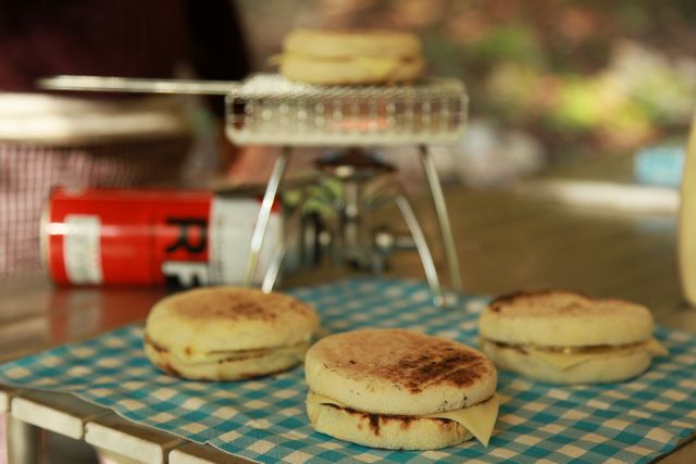 マフィンを軽くあぶって、バター、スライスチーズ、マヨネーズサンド。