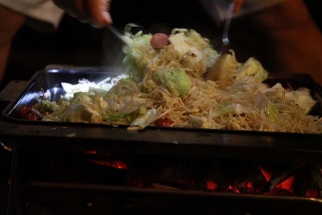 結構、大きな鉄板がキャベツ、もやし、やきそばで大盛り!
