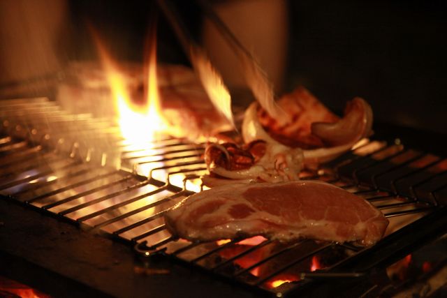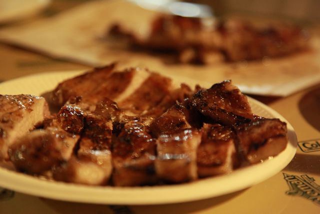 今度は厚切り豚ロースの炭火焼き。