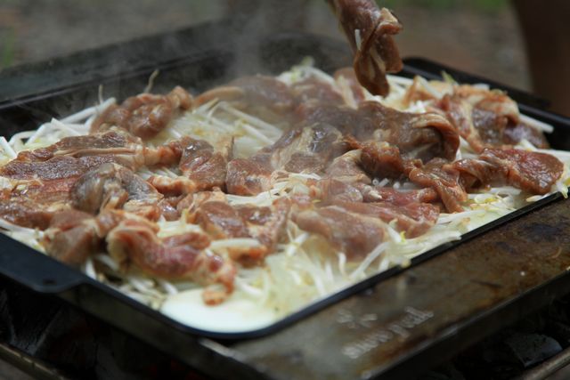 大人数なのでジンギスカン鍋じゃなく鉄板で豪快!!