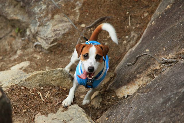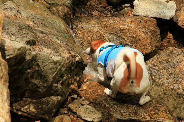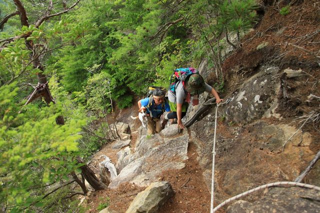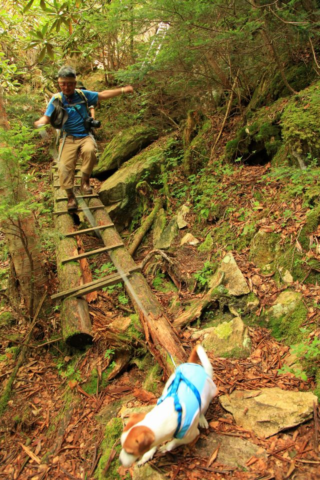 ロープあり。(頑張って大きな岩を四郎も登ってます)