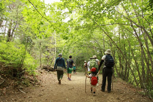 夏休みキャンプ2日目、3時間程度の山歩きと友人夫婦に聞きカモシカ遊歩道を明後日予定している金峰山山歩きのウォーミングアップのつもりで出かけた。