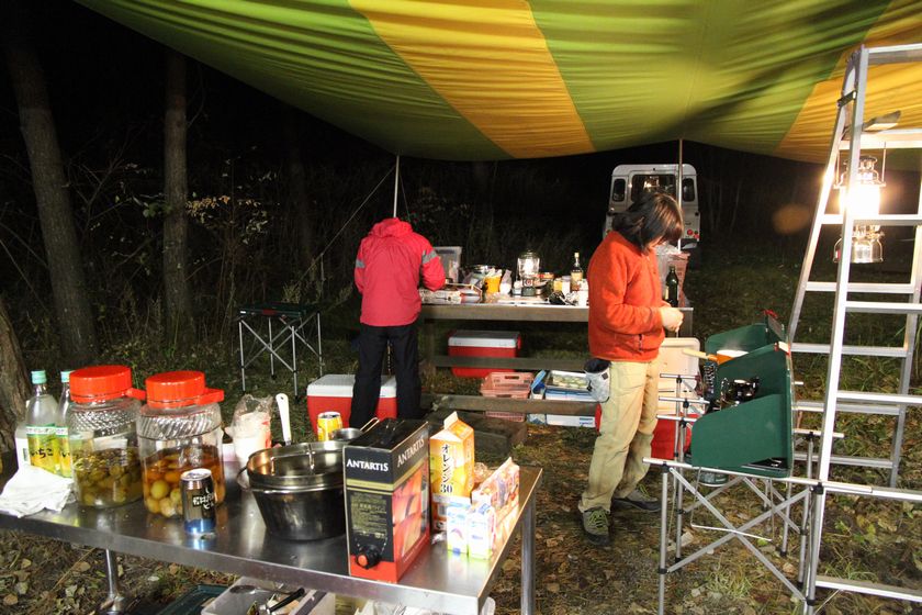 キャンプ場の営業最終日、スタッフ総勢で準備をしてくれて、晩餐会です。