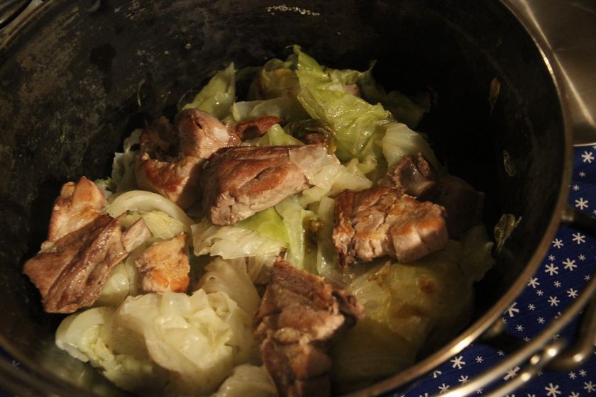 続いて友人作、キャベツとスペアリブのダッチオーブン焼き(蒸し?)