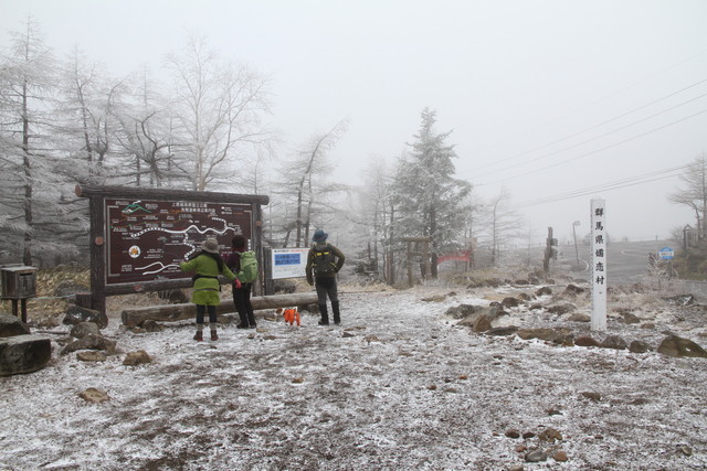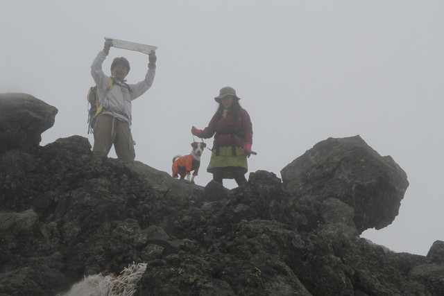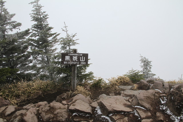 運が良ければ雲上の景観を見ることのできる黒斑山の頂きも、さすがに今日は晴れずじまい。いやいや参った。途中、口を開く余裕もなかった。死ぬかと思った。