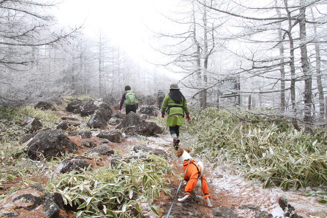 今回は、レインウェアなどの着替えと、お湯を入れた水筒二つに食糧と、日帰り山行の標準的な荷物量であるにも拘らず、二人分の荷物を40Lのザックに入れて担ぐと、上り始めて5分も経たずに息が上がってきた。昨年末、チャレンジした禁煙が、結局、減煙で終わってしまった後悔が重くのしかかる。ダメ、今日は。絶対ムリ。