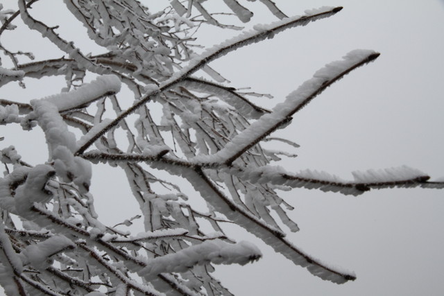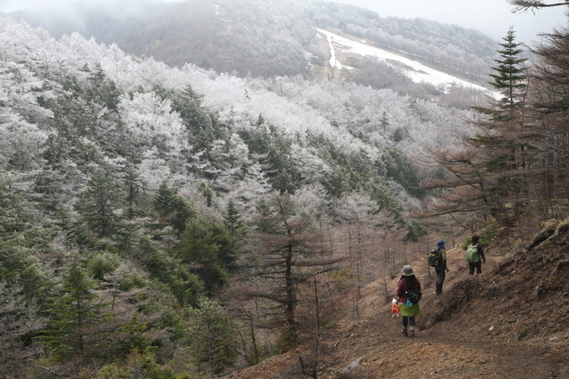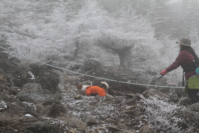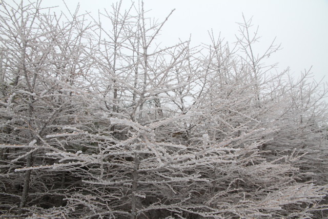 それにしても辺りの木々は、真っ白け。雪を被っているというより、凍ってるよね、これ。