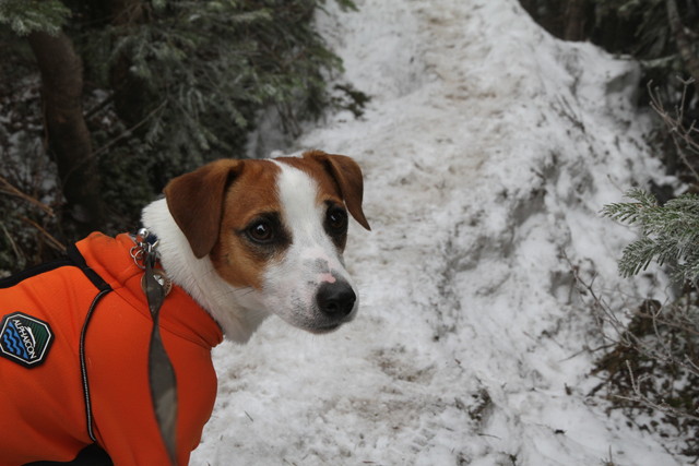 気温はどうだろう、2~3度というところだろうか?残雪の登山道はところどころ凍っており、持参した軽アイゼンを出そうか迷う。だけど、止まってザックを下す余裕さえない。写真を撮る・・フリして休憩。