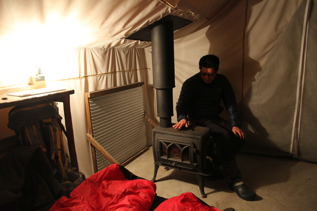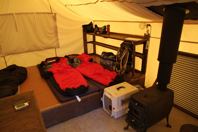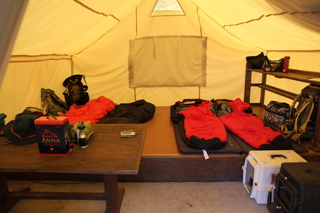 チェックインを済ませ、早速、ハンターテントキャビンへ。毎回、いろんな趣きで僕たちを歓迎してくれるスィートグラスだけに、期待も膨らむ。