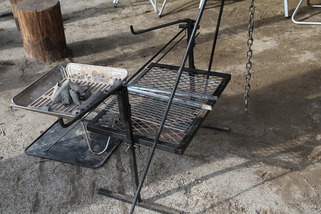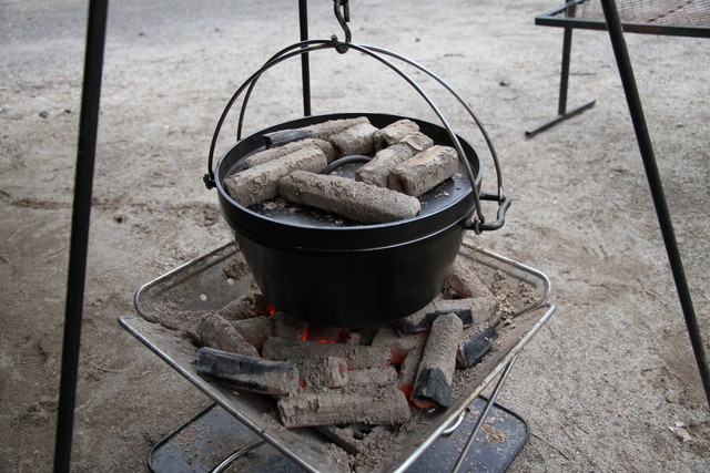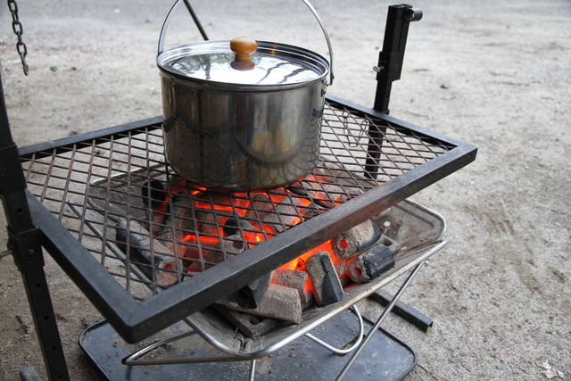 ダッチを使うような料理でも、微妙な火加減を要するものはできないしね。薪も、前回は火付きの違う材で、丸太材、板材とあったけど、あれはやっぱり必要かな。いずれにしても炭火を使えるように炭床の網が高さ調節できるようになってると便利だと思います。いや、あくまでもワイルドな焚火料理にチャレンジして欲しい・・そんな声も聞こえてきそうだけど。