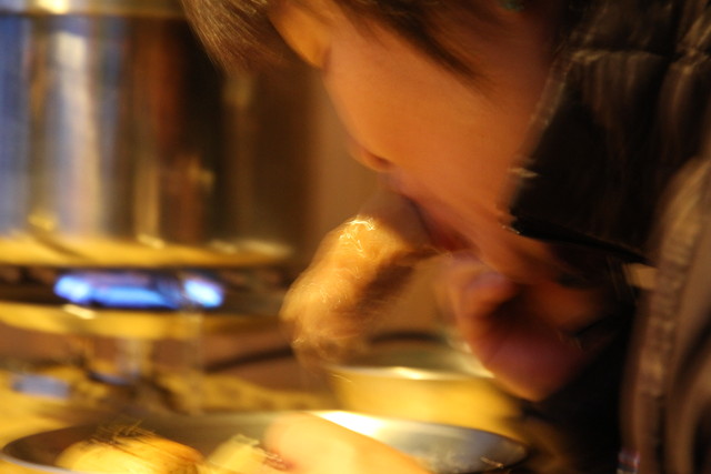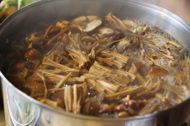 先ずは、まだ肌寒いこの時期には外せない「きのこ汁」。地のなめこや舞茸、ごぼう、里芋なんかね、どうしてもあれやこれや具材を買い過ぎ、作り過ぎちゃうんだけど。一通りの具材を入れてしまうと、あとはストーヴの上でコトコト・・。