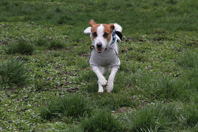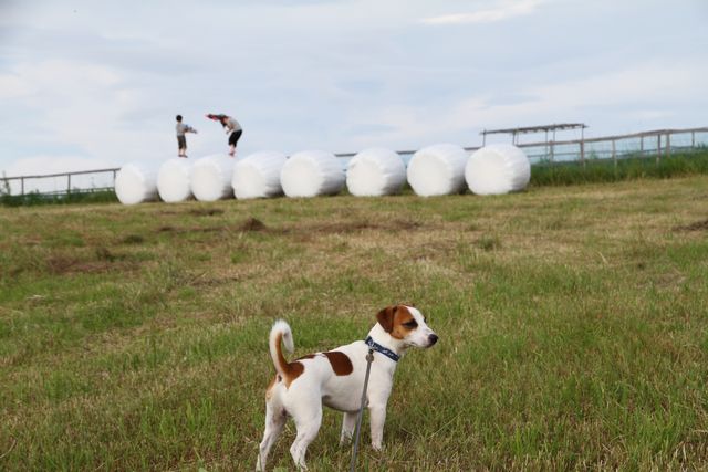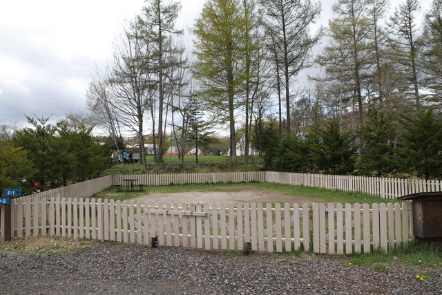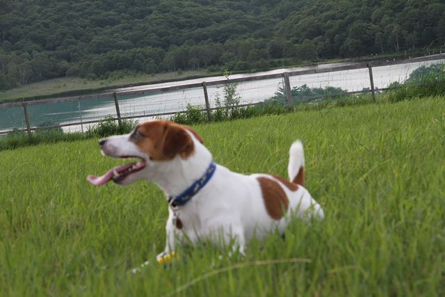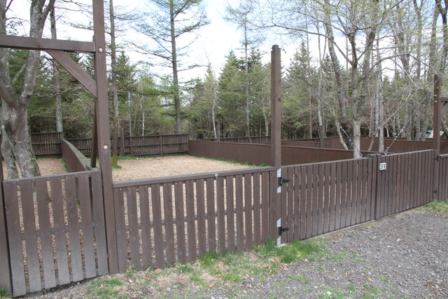 で、目の前の木立を抜けた先、キャビンから1分もかからないドッグラン・・というか、放牧場だよね、まるで。牛?いや、犬ですけど、まぁ、大喜び。よく手入れされたドッグランは、小型犬用と中大型犬用に分かれていて、柵の幅木の間隔もそれに合わせて変えてある。犬の目線で閉塞感を感じさせず、けど脱走兵もなしよ。配慮を感じます。