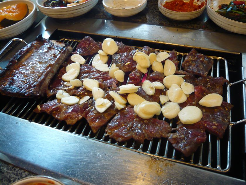 店員さんが勝手にドサドサお肉とニンニクを乗せていきます。