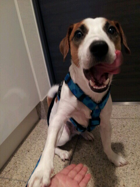 目を合わせた瞬間「おれ?おれだよね?散歩?おれ、散歩?」絡んだ視線を離さない。