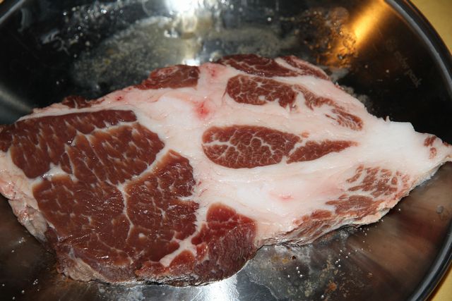 さすがツルヤ、「スペイン産 イベリコ豚肩ロース」とやら塊りが売っていてこんなの初めて見たのでつい買ってしまいました。